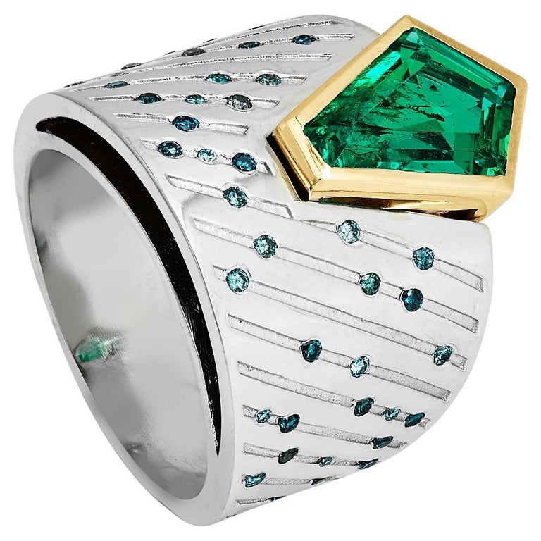 Custom Designed Colombian Emerald Diamond 18k Cigar Band Ring For Sale At 1stdibs